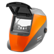 - Поликарбонатная защитная пластина защищает лицо и глаза от искр при поднятом экране.